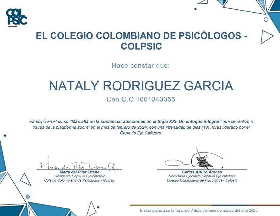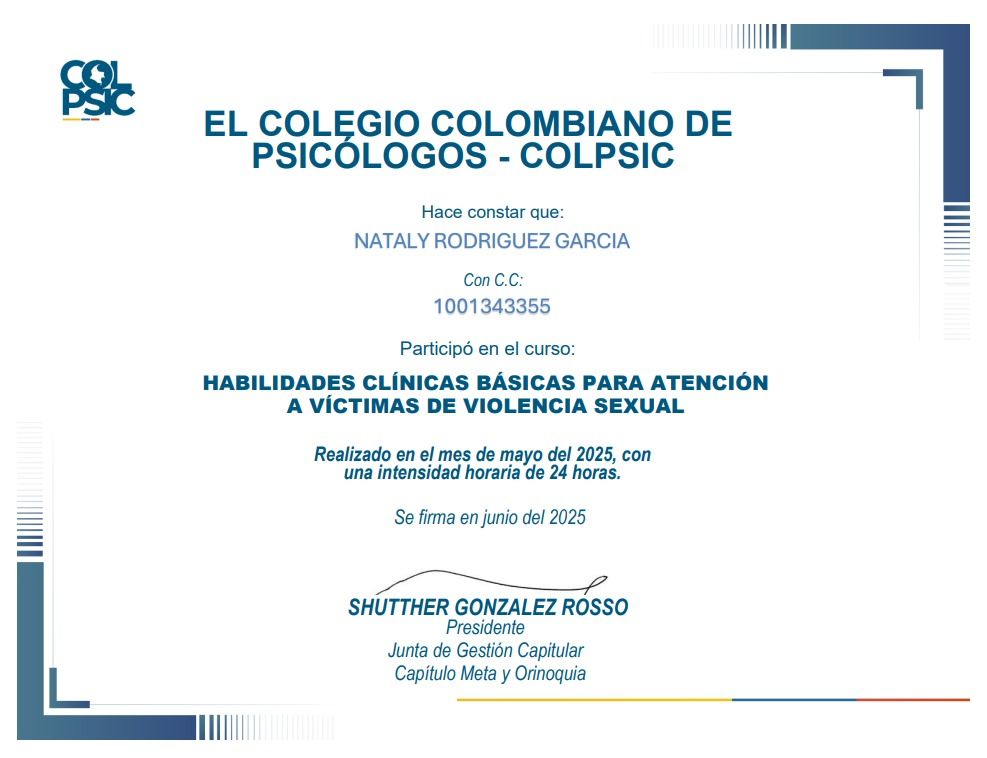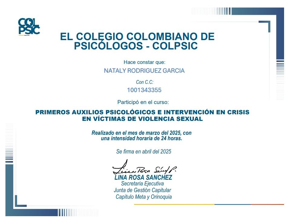 Hola! Soy Nataly Rodríguez, psicóloga con experiencia en psicología clínica particular, psicología educativa y comunitaria. Además, soy creadora de la Fundación Giratusol que busca promover la salud mental en la comunidad.